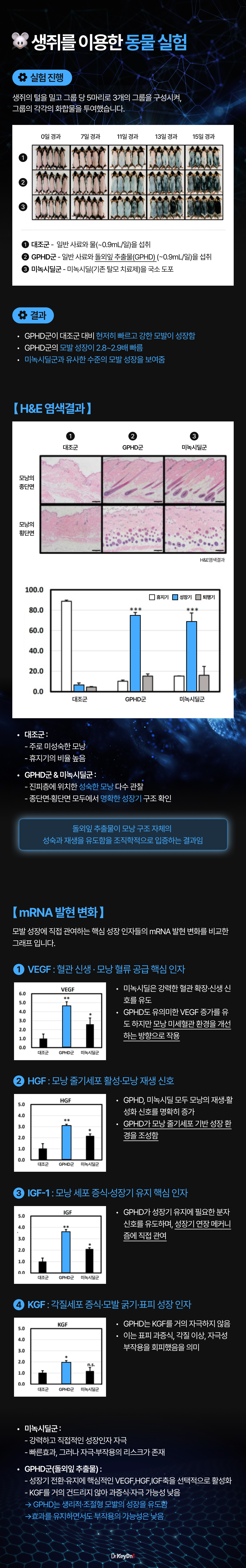 ✓ 실제 실험 사진 (쥐 모발 성장)