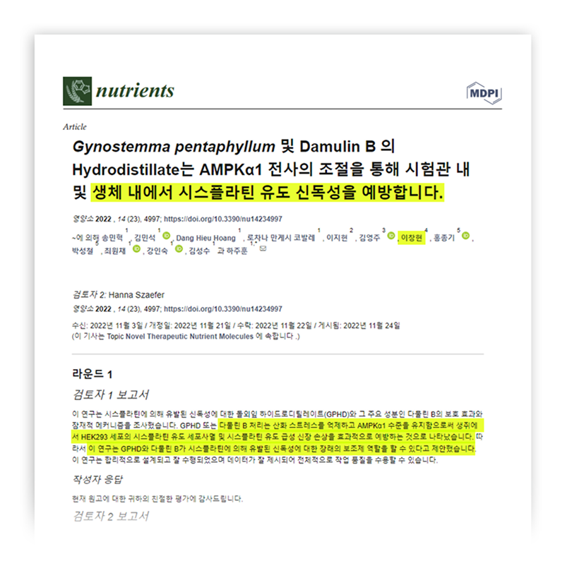 따라서 이 연구는 GPHD와 다물린B가 신독성에 대한 보조제 역할을 할 수 있다고 제안했습니다.”