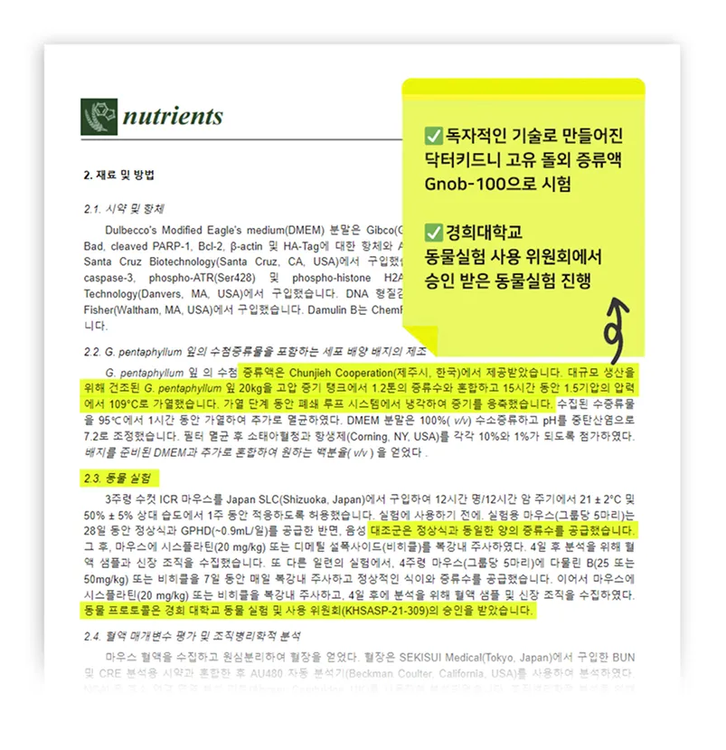 “ㅡ 돌외잎 추출물에 포함된 다물린B는 산화 스트레스를 억제하고, 급성 신장 손상을 효과적으로 예방하는 것으로 나타났습니다.